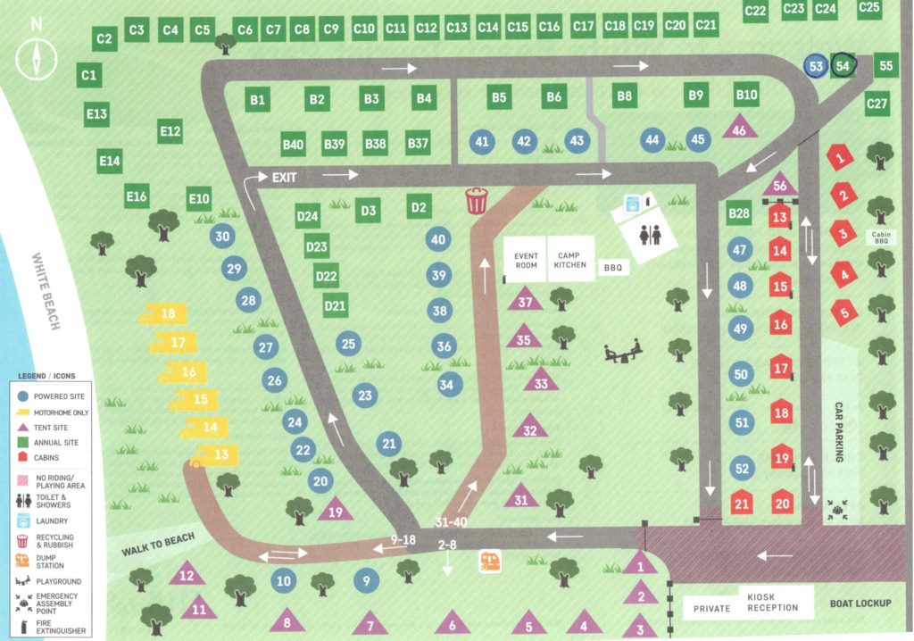 - Facilities: Camp Kitchen, Dump Point, Playground, Wi-Fi
